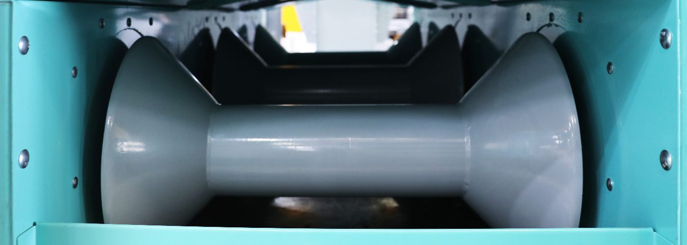 專用制具制成的啞鈴式托輥,對中性高,動平衡好