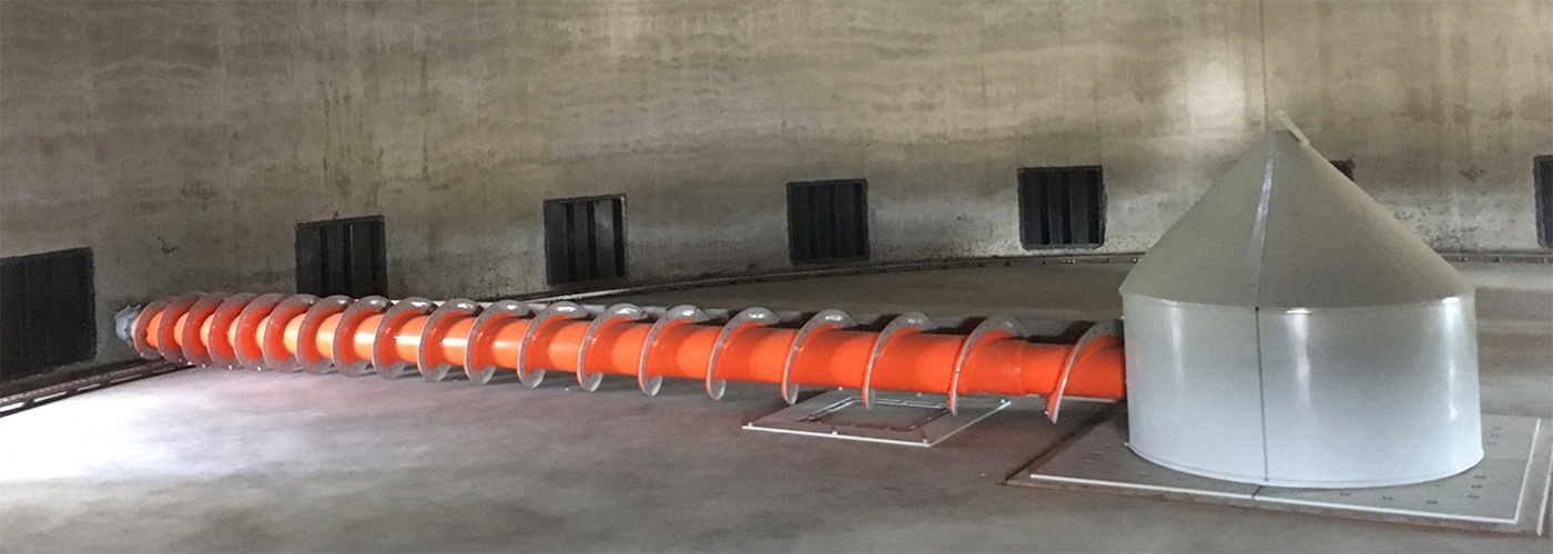 公轉行走系統通過特殊的軌道自清裝置結合鏈輪組件來實現,為出倉絞龍切入物料提供動力
